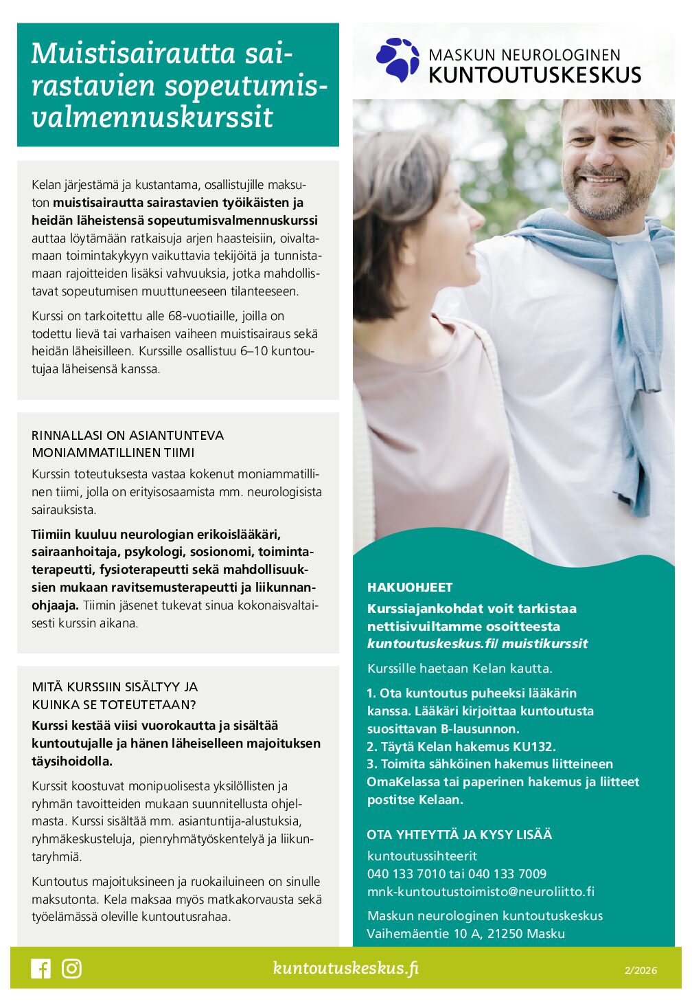Muistisairautta sairastavien sopeutumisvalmennuskurssit Maskussa