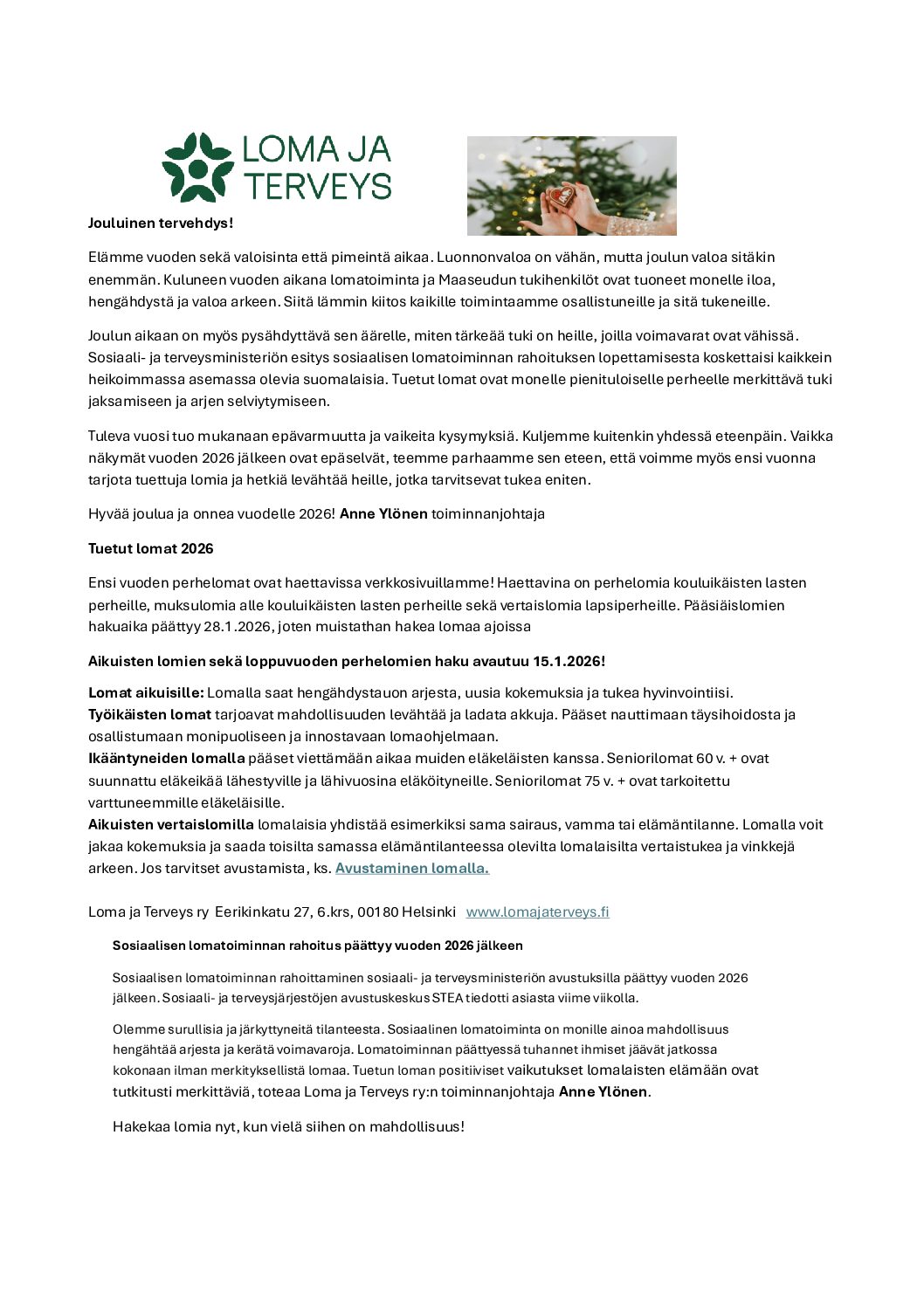 Tuetut lomat 2026 – Loma ja terveys